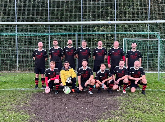 Es wurde eine Spielzeit von 2x 40 Minuten vereinbart und das Spiel startete sehr dynamisch und mit intensivem Druck auf die Ballführer. Beide Seiten schenkten sich nichts und es war klar das hier wir kein Spaziergang. Unsere Offensive lief jedoch den Gegner schon sehr früh an. Panos, Bartosz und Olli (später auch Malik) waren für den Gegner unangenehm zu verteidigen. Bartosz hatte dann auch nach wenigen Minuten mit einem Schuss gegen den Pfosten die erste Tormöglichkeit. Der Gegner kam anfangs kaum aus seiner Hälfte heraus, weil auch unser Mittelfeld mit Kai, Danny, Fredi und Guido die Bälle abfangen konnte. So fiel auch schon nach 12 Minuten das erste Tor, nach Vorlage von Panos auf Bartosz, der cool einnetzte. Die Boostedter waren aber nicht geschockt, sondern zeigten jetzt, dass sie einen gepflegten Fußball spielen können und kamen immer wieder vor unser Tor oder holten einige Ecken heraus. Aber meist war spätestens Schluss bei Toto, Marcel und Rouven die ein Abwehrbollwerk bildeten. Trotzdem musste Hamo im Tor einige Fernschüsse ablenken und auch nach Ecken klären. Gegen einen Schuss in der 20. Minute vom 16er ins linke obere Eck war aber auch er dann machtlos. Im direkten Gegenzug, kurz nach dem Anstoß, trifft Olli, in der 23. Minute, nach Vorlage von Panos mit Wucht ins gegnerische Tor. So ging es mit 2:1 für uns in die Halbzeit.