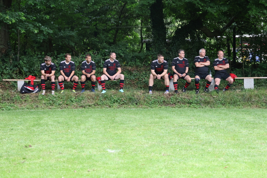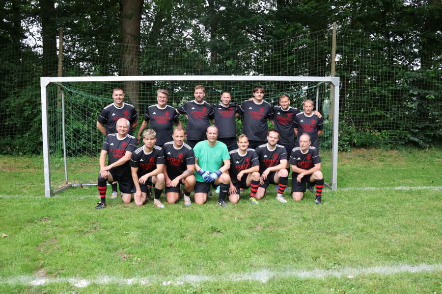 Am 24.06. sind wir der Einladung der Ackerfreunde gefolgt, um den MEISTER-ALLER-MEISTER zu ermitteln. Bei sommerlichen Temperaturen machten wir uns mit 8 Mann auf den nach Schlotfeld. Es ging bei 6 teilnehmenden Mannschaften im Modus Jeder-gegen-Jeden. Die anderen Mannschaften waren im Schnitt auch etwas jünger als wir, was vielleicht auch ein Grund war, warum wir am Ende auf dem 5. Platz landeten. Im ersten Spiel ging es gegen die Mannschaft aus Oldendorf. Hier war eigentlich kein großer Altersunterschied zu erkennen. Wenn wir vorne unsere Chancen besser genutzt hätten (u.a vergebener 9-Meter), hätte es vielleicht zu mehr als zu einem 1 :1 gereicht. Das Tor erzielte Panos, das alte Schlitzohr mit einer direkt verwandelten Ecke. Im zweiten Spiel gegen Drage lief es ähnlich wie im ersten Spiel. Vorne die Dinger nicht gemacht und durch eine Unkonzentriertheit hinten kurz vor Ende das 0:1 gekriegt. Im dritten Spiel gegen die Ackerfreunde 1 lief es dann besser für uns. Hinten brannte nicht viel an. Wenn mal ein Ball aufs Tor kam, parierte Michael H. herausragend. Nach vorne sah es auch nach Fußball aus. Schöne Spielzüge sorgten dafür, dass wir durch Tore von Kai, Markus und Panos 3:0 in Führung lagen. Anstatt den Sack mit dem vierten Treffer zuzumachen, haben wir die Ackerfreunde noch einmal rankommen lassen. Aber wir konnten das Spiel mit 3:2 gewinnen. Das vierte Spiel ging gegen den späteren Turniersieger "Team Willmann" mit 0:3 verloren. Im letzten Spiel gegen die Ackerfreunde 2 wollten wir noch einmal ein Sieg einfahren. Es sah am Anfang auch gar nicht so schlecht aus. Toller Doppelpass von Kai und Markus und Kai markierte das 1:0. Doch auch hier haben wir den Sack mit dem zweiten Treffer leider nicht zugemacht und hinten kassierten wir nach einem Konter und einem Freistoß die Gegentore 1 und 2. Wir warfen noch einmal alles nach vorne. Doch es reichte nicht mehr für den Ausgleich. Quasi mit dem Schlusspfiff fingen wir noch einen Konter zum 1:3. Somit stand am Ende ein fünfter Platz. Es war bei den Temperaturen eine super Mannschaftsleistung und so bleibt die Gewissheit, dass wir mindentens ein Jahr warten müssen, um uns MEISTER-ALLER-MEISTER nennen zu dürfen.