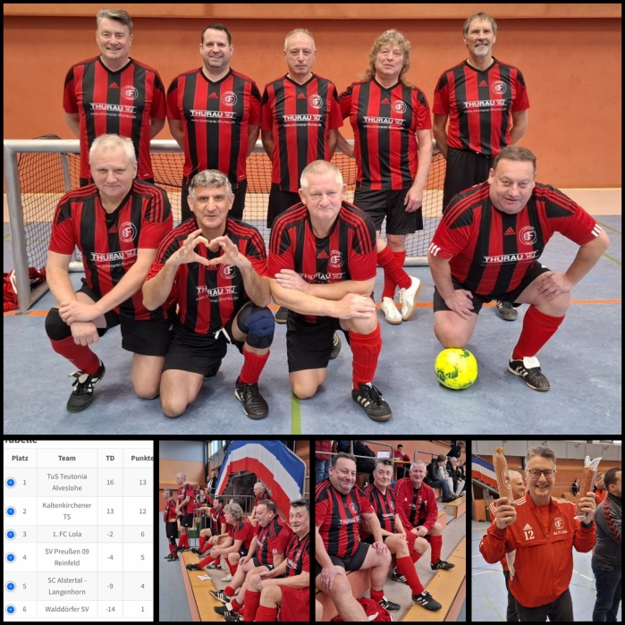 Nachdem wir bei den Landesmeisterschaften 2023 das erste Mal Walking Football gesehen haben und wir auf die Idee kamen, doch mal eine Sparte Walking Football aufzumachen, war es jetzt nach ca. 2 Jahren Traningszeit soweit. Wir fuhren nach Alveslohe und nahmen an unserem ersten offiziellen Turnier teil, dem Teutonen Cup des TUS Alveslohe. Man hat uns in den ersten Spielen die fehlende Erfahrung im Walking Football doch noch angesehen (1. Spiel 0:3 gegen die Kalternkirchener TS / 2. Spiel 1:2 gegen den späteren Sieger TUS Alveslohe). Das erste Tor in einem offiziellen Turnier im Walking Football konnte Toto für den 1. FC LoLa erzielen. Doch je mehr Spiele wir spielten und uns die Gegner mal ein wenig genauer in Sachen Stellungs- und Zusammenspiel anschauten, wurde es von Spiel zu Spiel besser. Das Spiel gegen den SC Alstertal Langenhorn konnten wir mit 1:0 gewinnen. Gegen die starken Walking Footballer vom Wiker SV verloren wir sehr unglücklich mit dem entscheidenen Gegentor in den letzten 10 Sekunden mit 0:1. In den letzten beiden Spielen konnten wir noch 4 Punkte einfahren. Dem 6:0 Sieg gegen den SC Poppenbüttel folgte ein 2:2 gegen den SV Preußen Reinfeld. Am Ende landeten wir auf einem sehr guten 4 Platz. Das Ergebnis ist dafür, dass es unser erstes Turnier war, echt super. Dadurch, dass wir auch mal andere Mannschaften haben spielen sehen, wissen wir jetzt wo wir stehen und an welchen Sachen wir arbeiten können, um gut gerüstet an den Landesmeisterschaften am 15.03.2025 teilnehmen zu können.